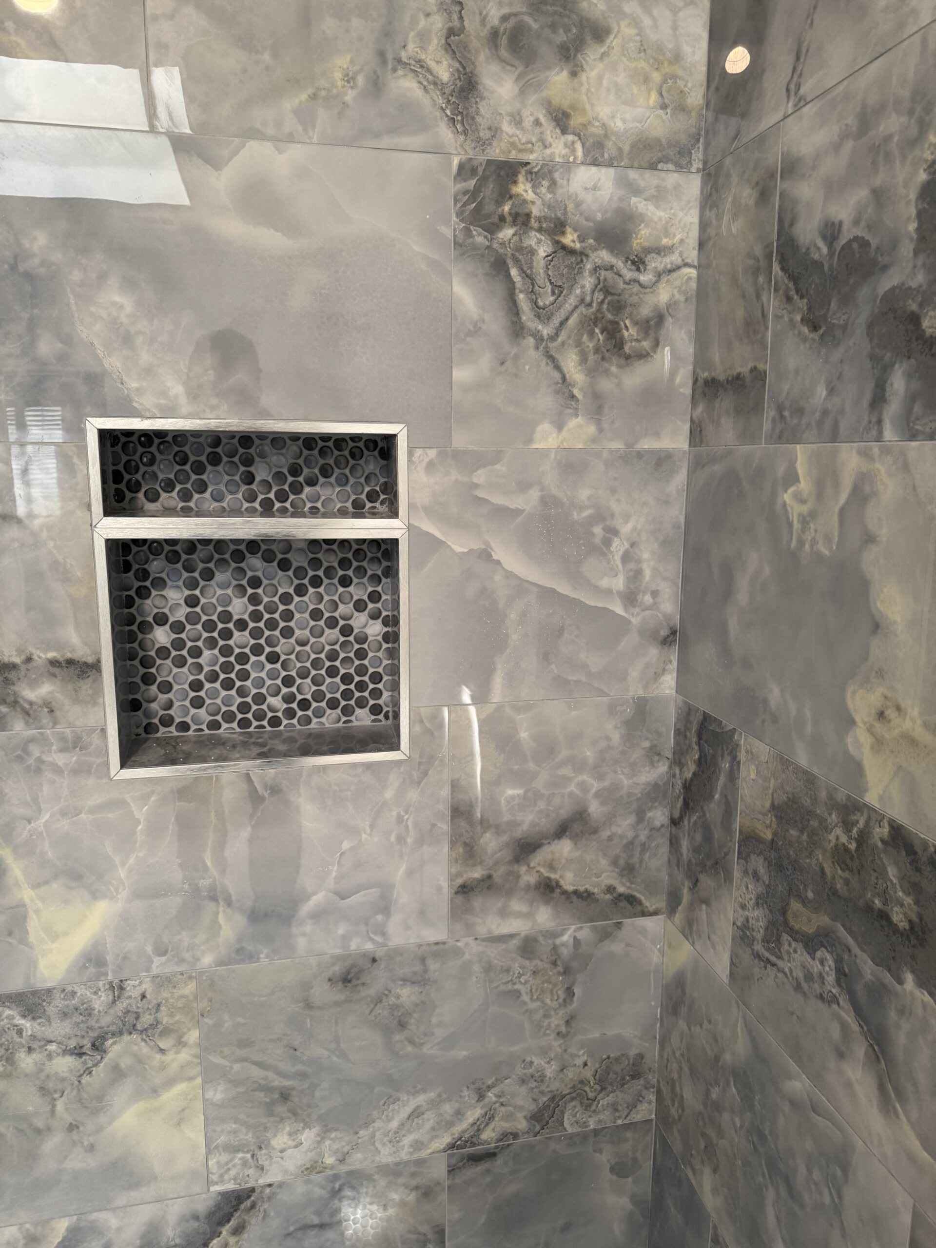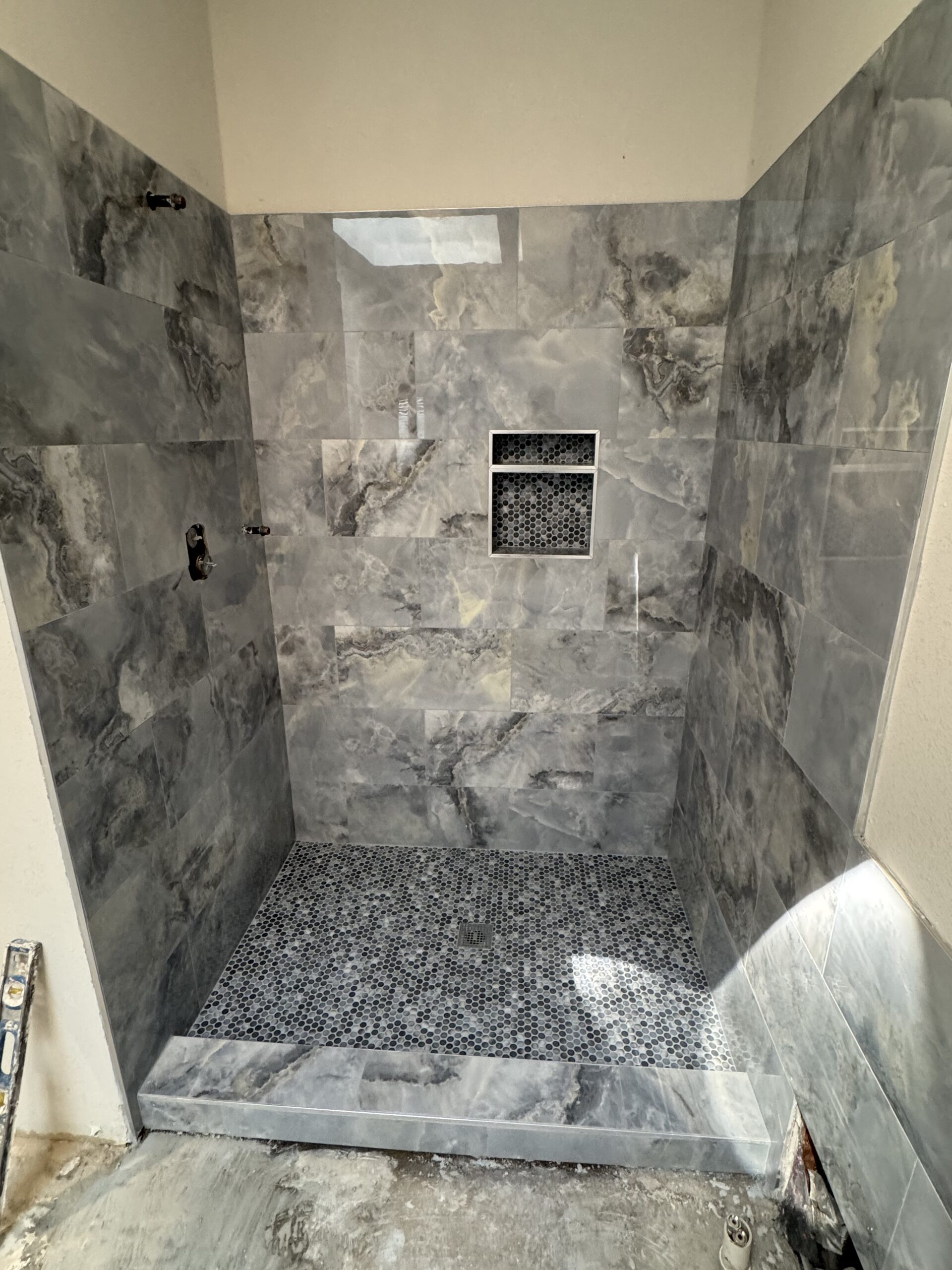 Custom tile shower rebuild with niche