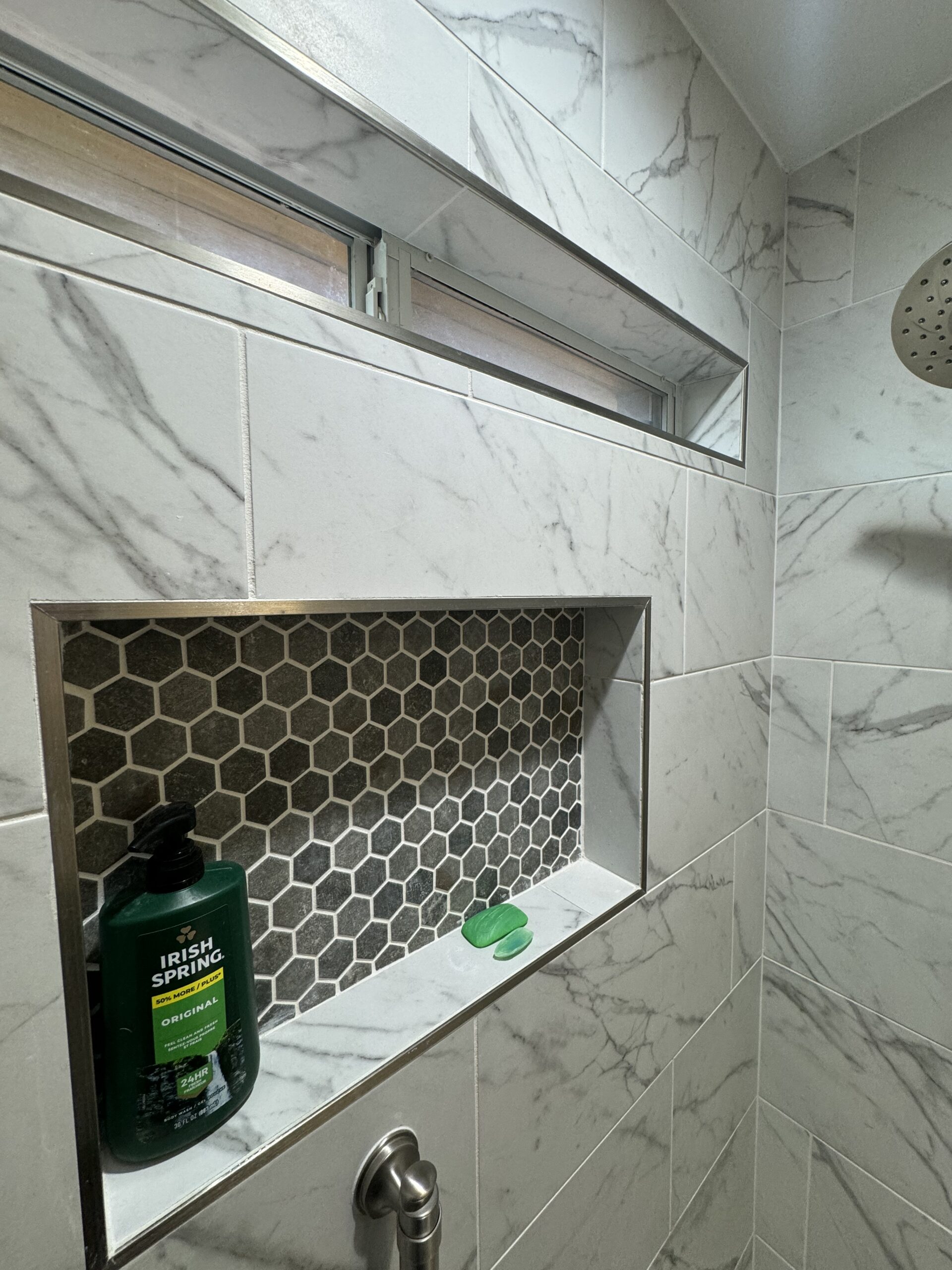 Rather than a full gut and reconfiguration, the goal was to modernize the bathroom through targeted improvements that would make a noticeable daily difference.