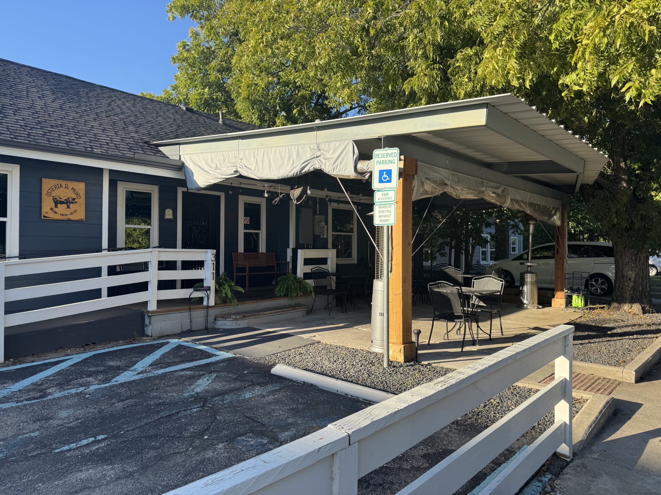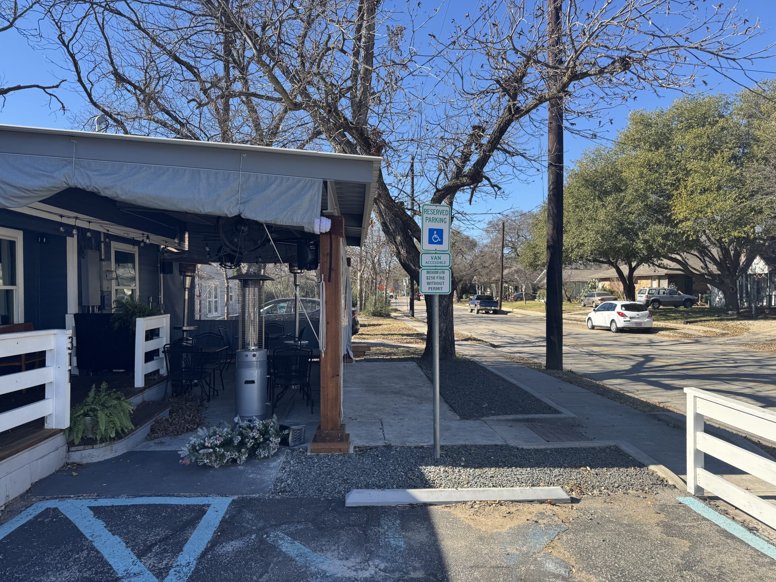 This commercial patio renovation was completed for a restaurant in Denton. The goal was to preserve the functionality and character of the existing outdoor dining area while bringing the structure into full compliance with current zoning, setback, and electrical requirements.