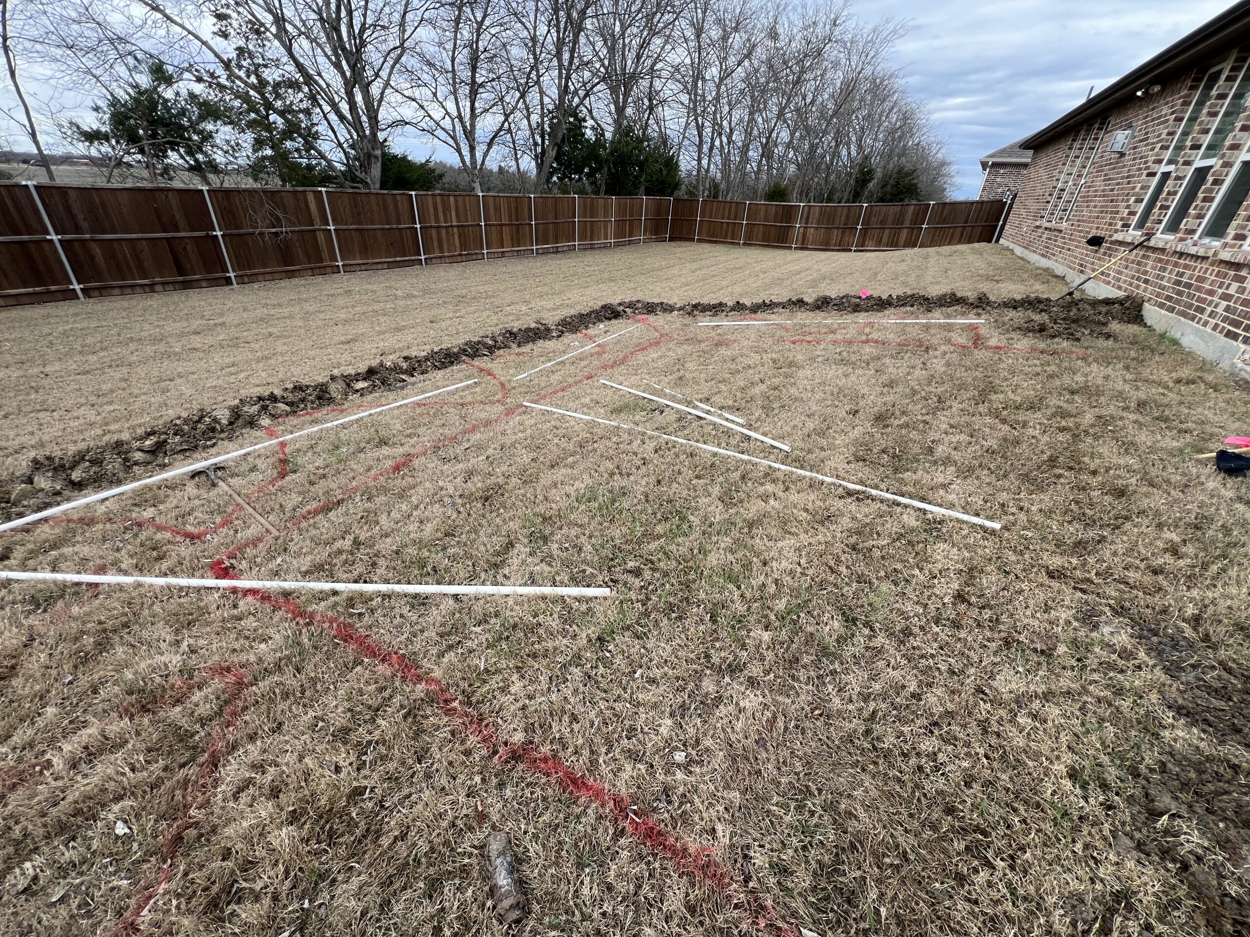 The original irrigation layout ran directly through the patio footprint. We reworked the system prior to the pour, rerouting lines and adjusting zones to protect coverage and avoid future access issues.
