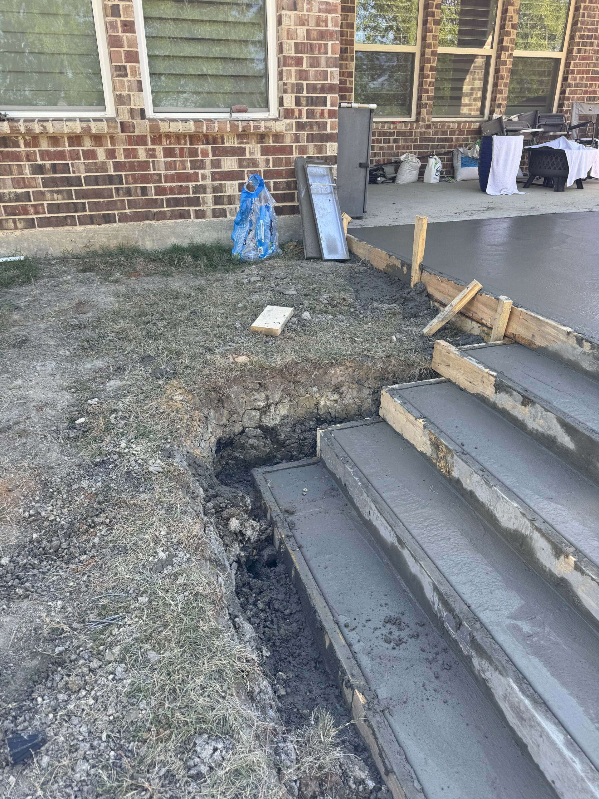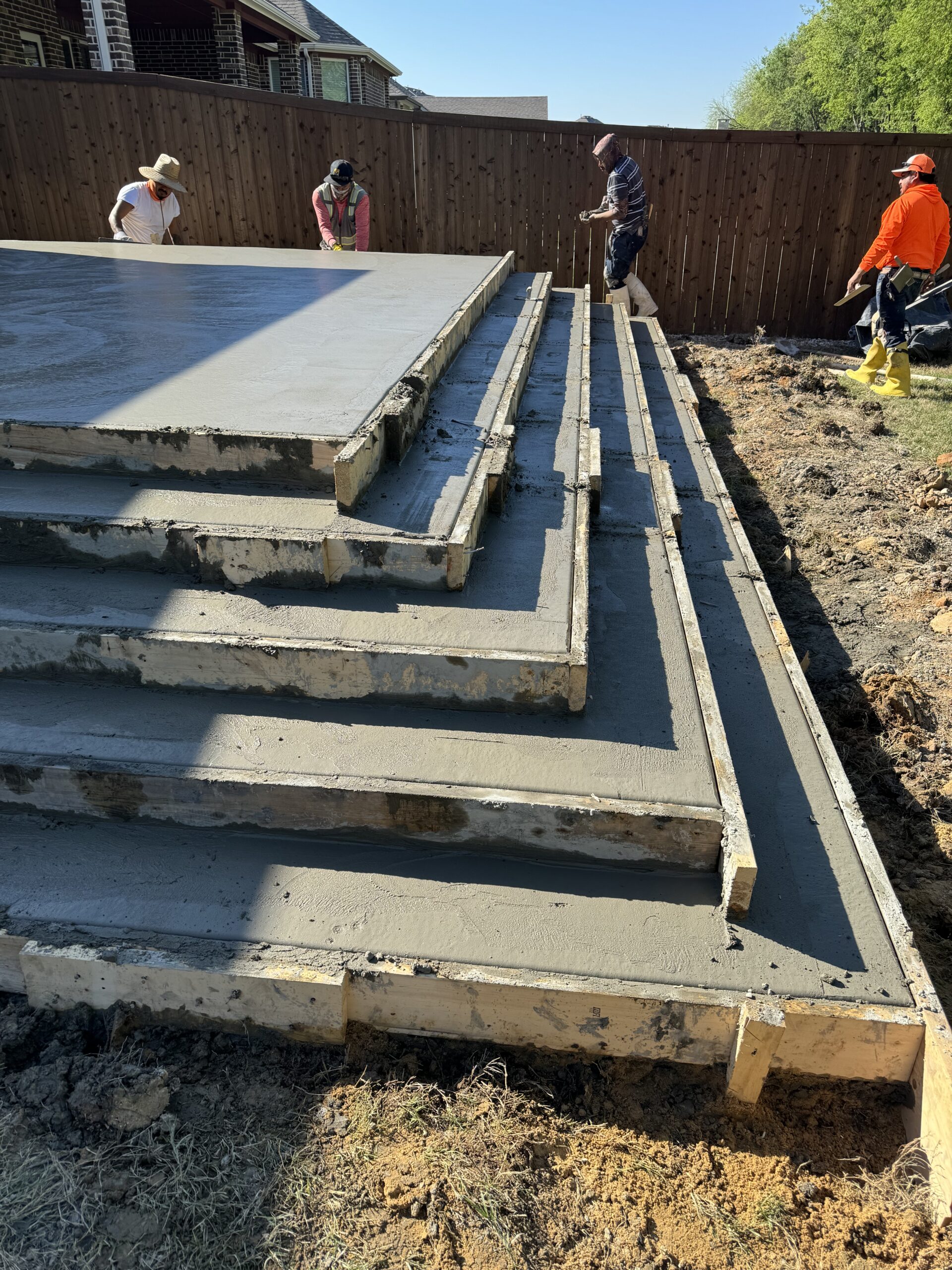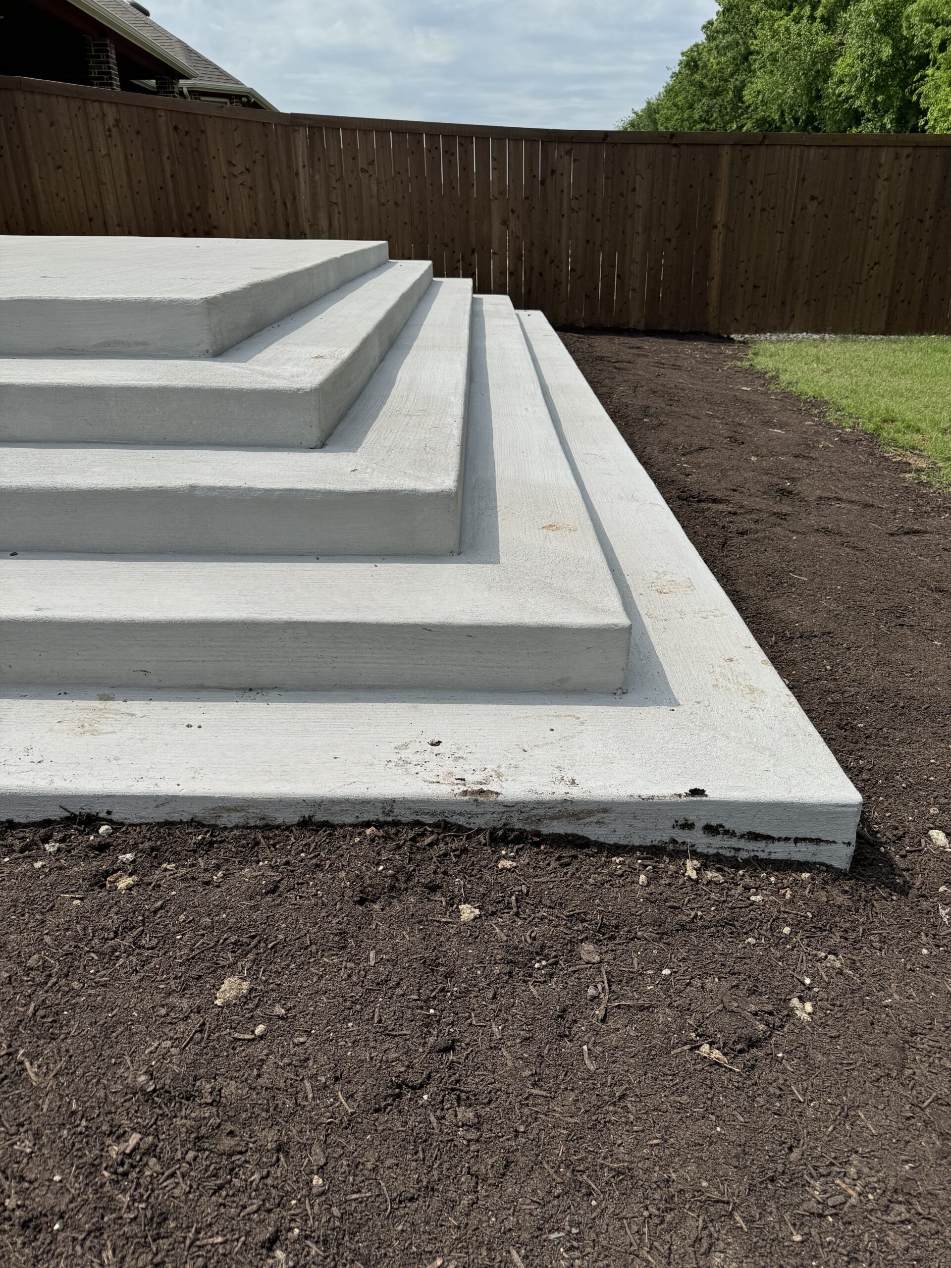 This Rockwall, TX backyard presented a significant elevation change that limited how the space could be safely used. The homeowners wanted a large, open concrete patio that felt substantial and permanent, but also remained accessible for grandchildren and elderly family members.