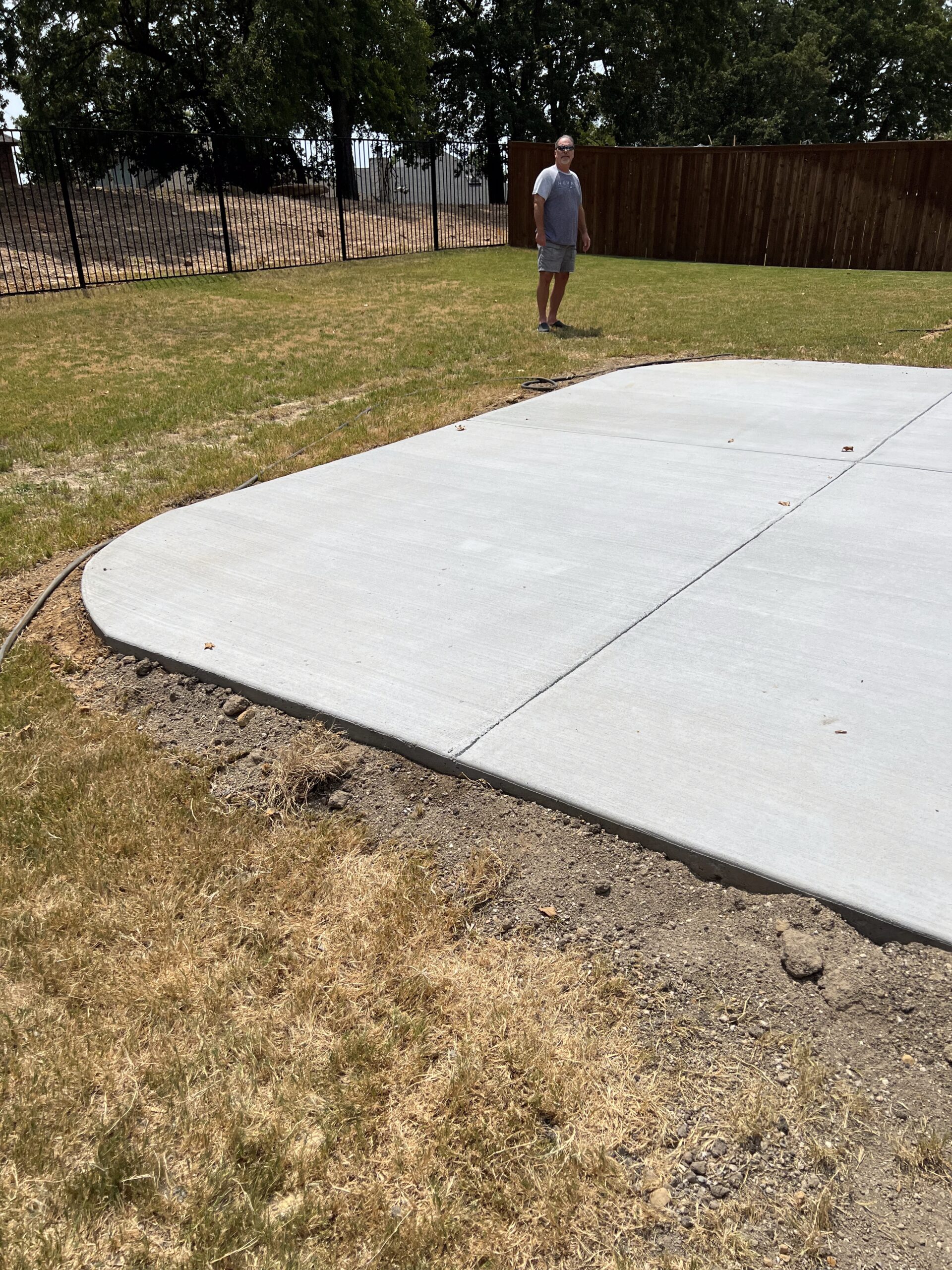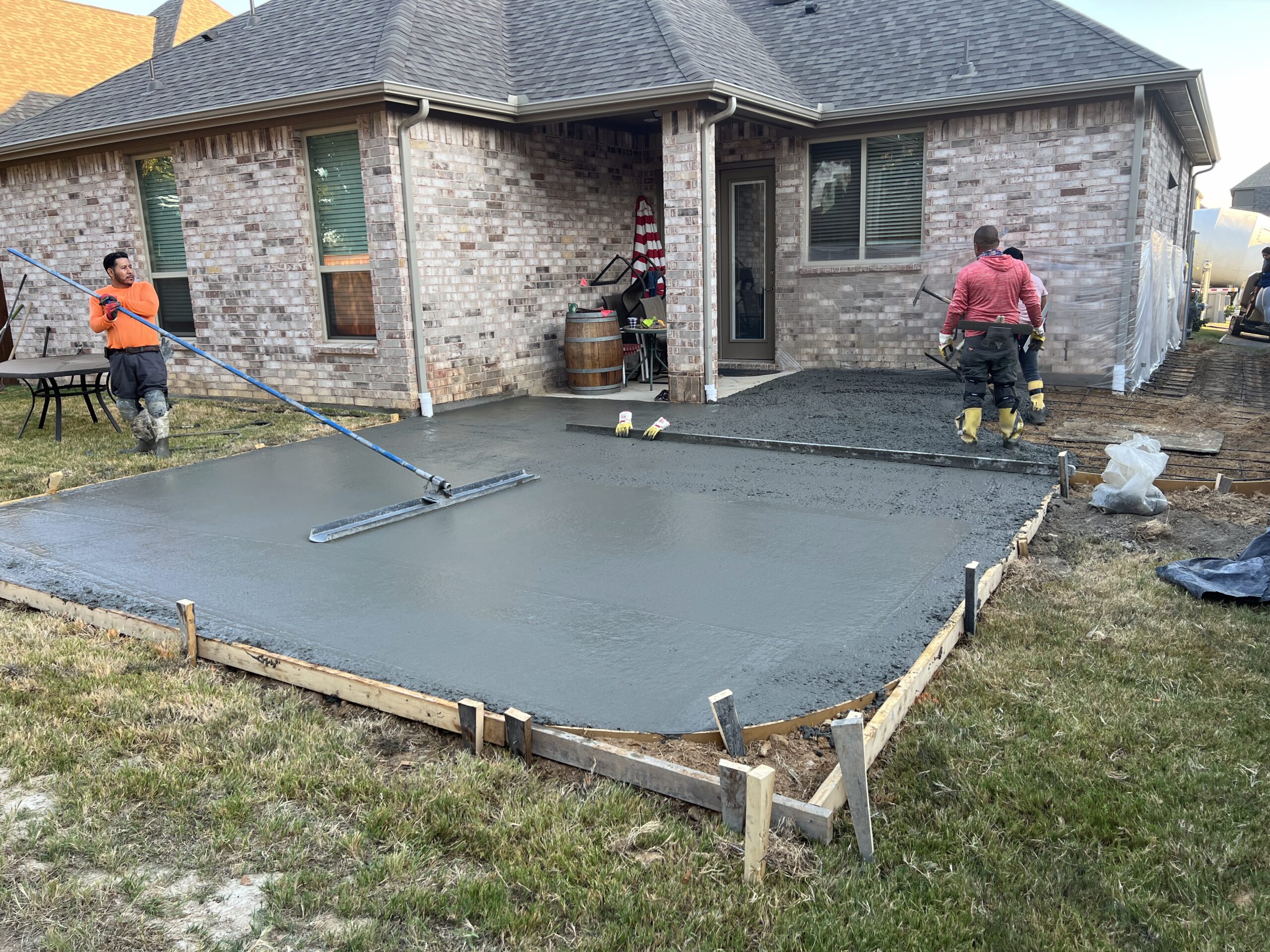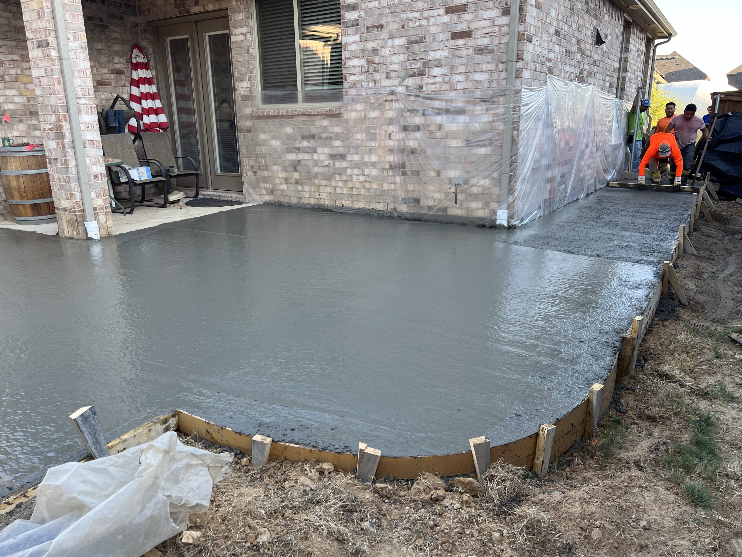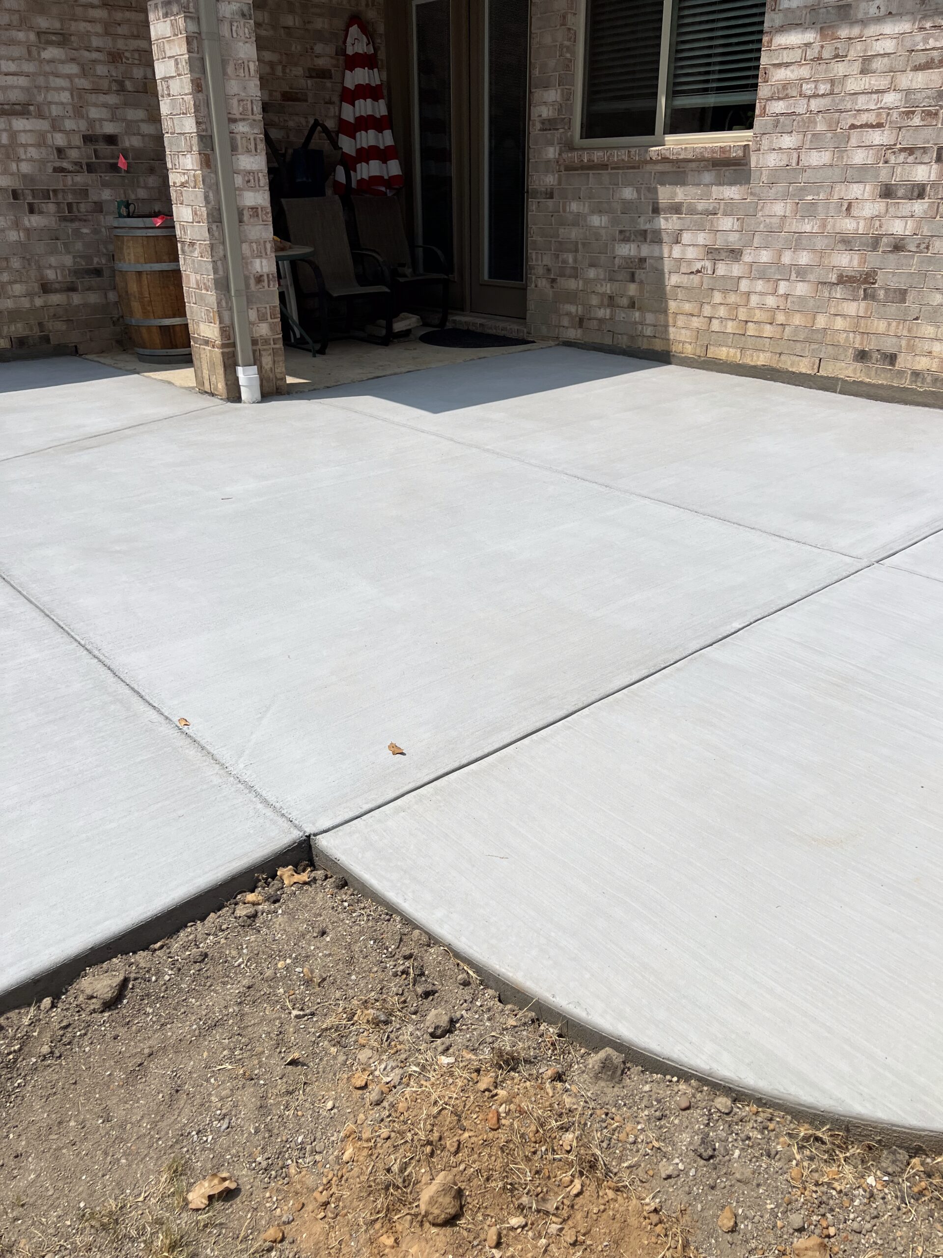 This Denton concrete patio was built for homeowners who recently relocated from out of state and wanted a clean, durable outdoor living space they could enjoy year-round.
