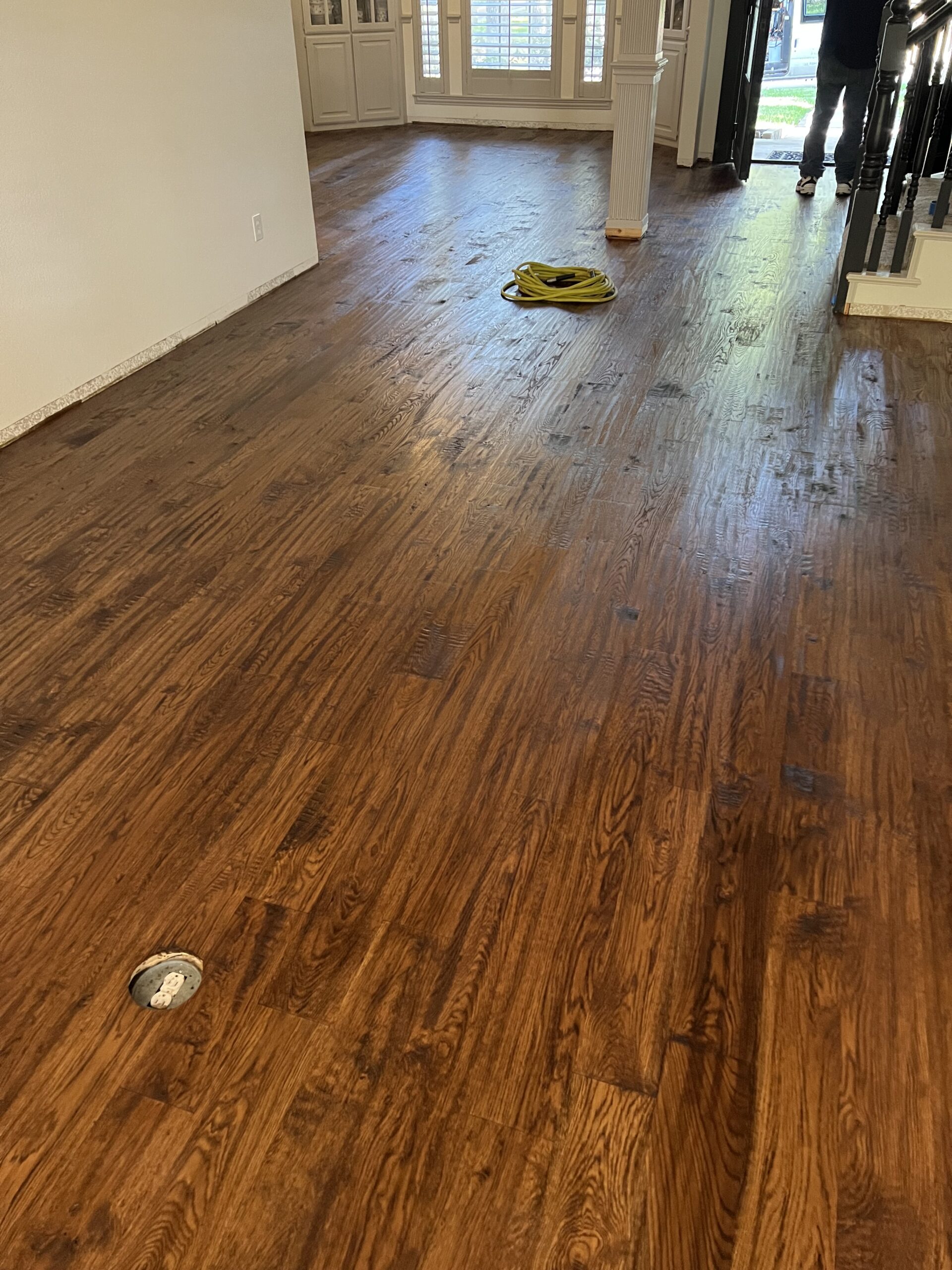 The finished floor delivers a classic, durable foundation for the home and will continue to develop character over time. The combination of genuine hardwood, thoughtful installation, and a carefully chosen stain resulted in a finish that feels intentional, warm, and built to las