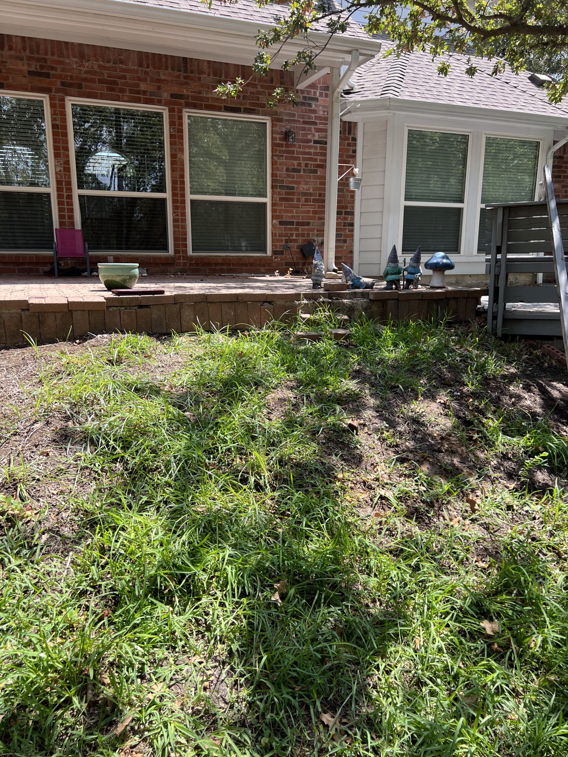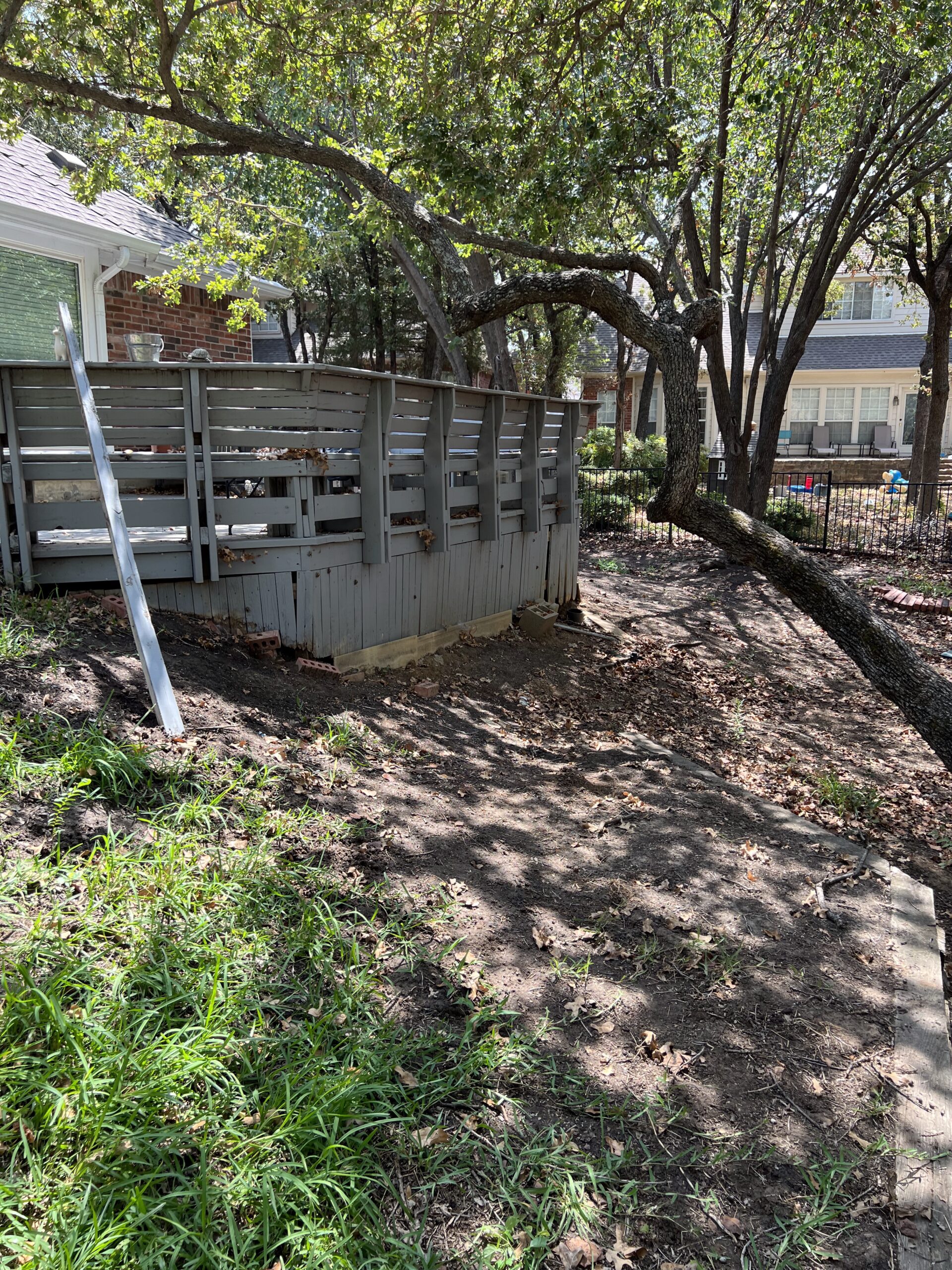 This Highland Village backyard started with an aging wood deck and limited usable outdoor space. The goal was to completely rework the yard into a functional, low-maintenance entertaining area that flowed naturally with the home’s existing architecture.