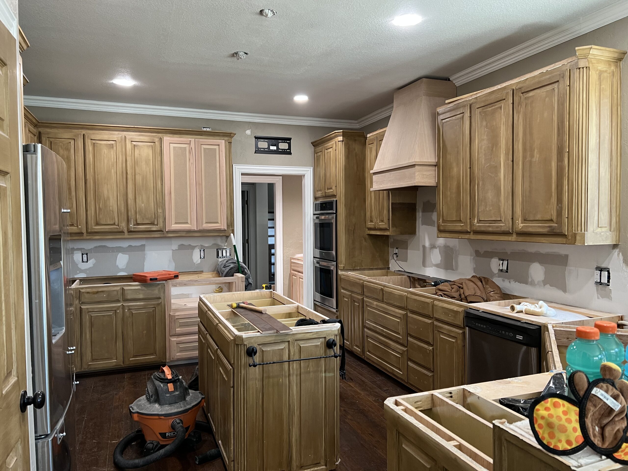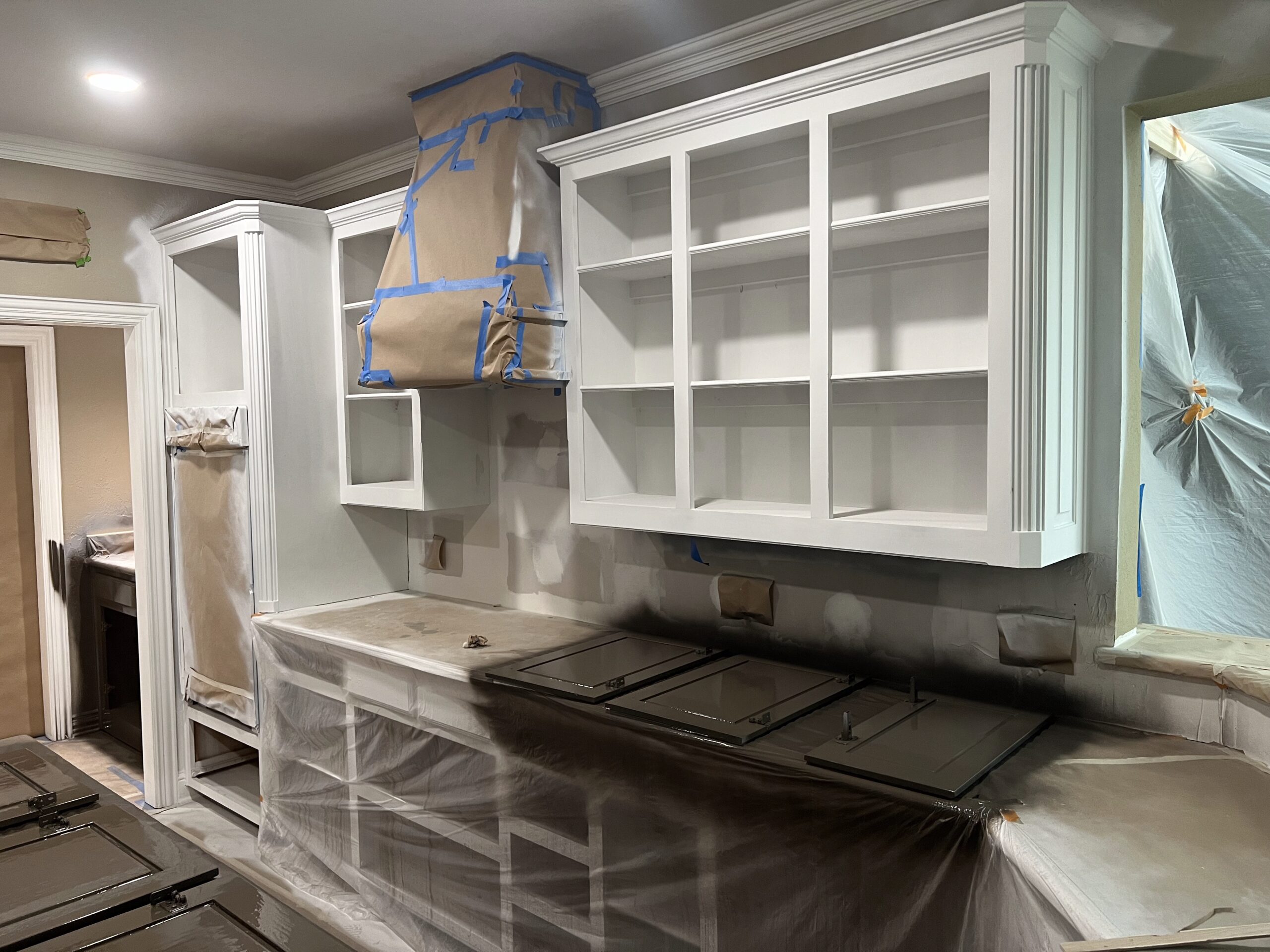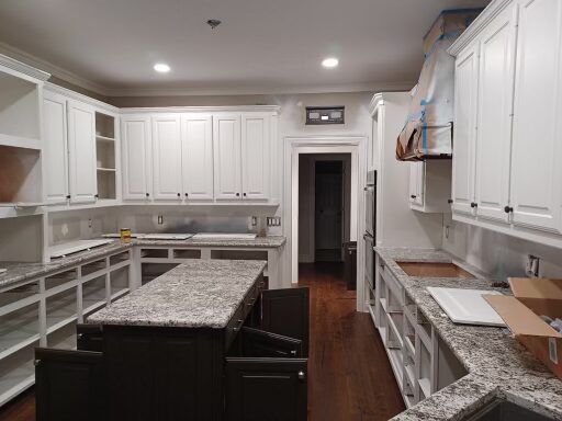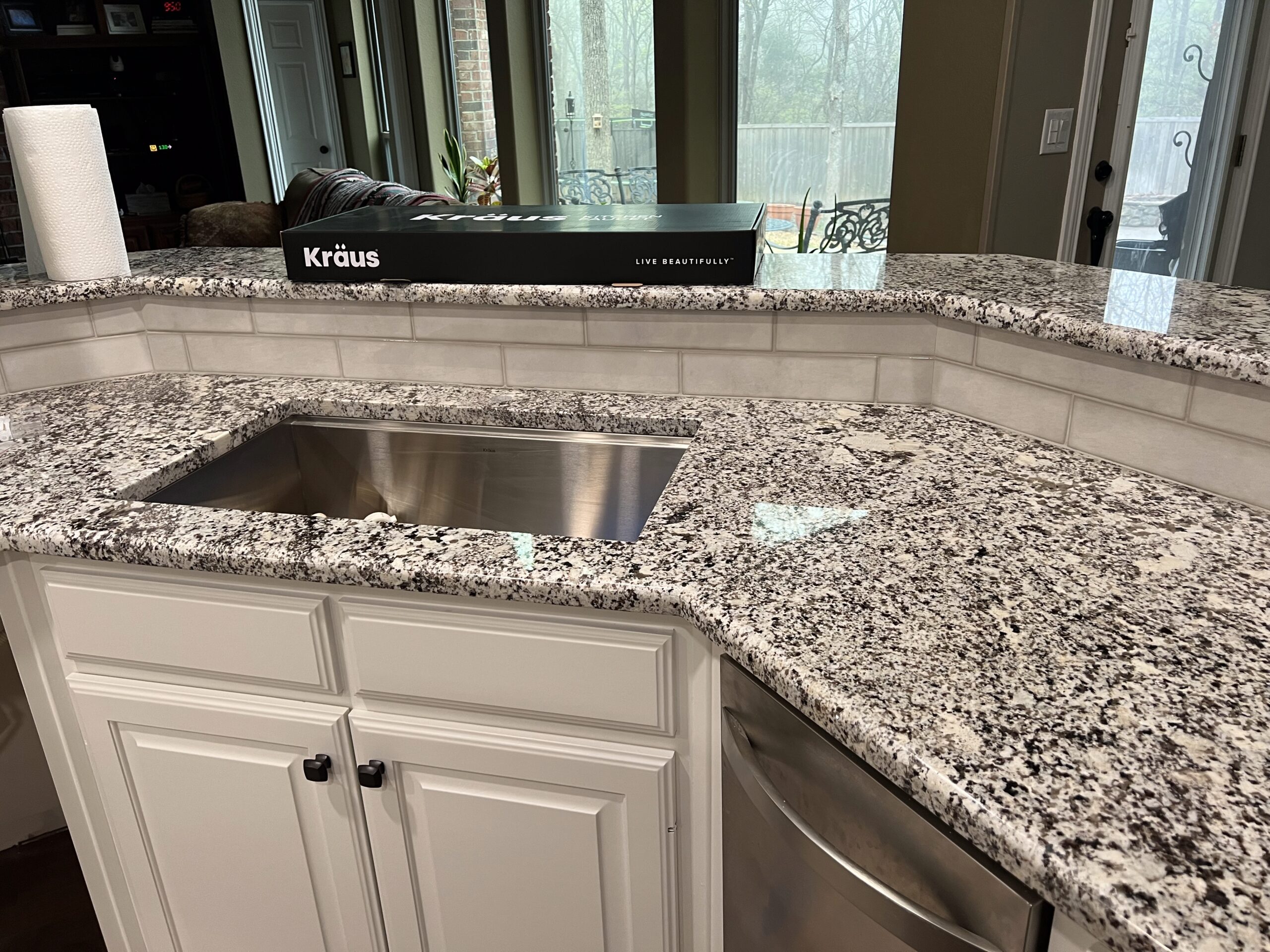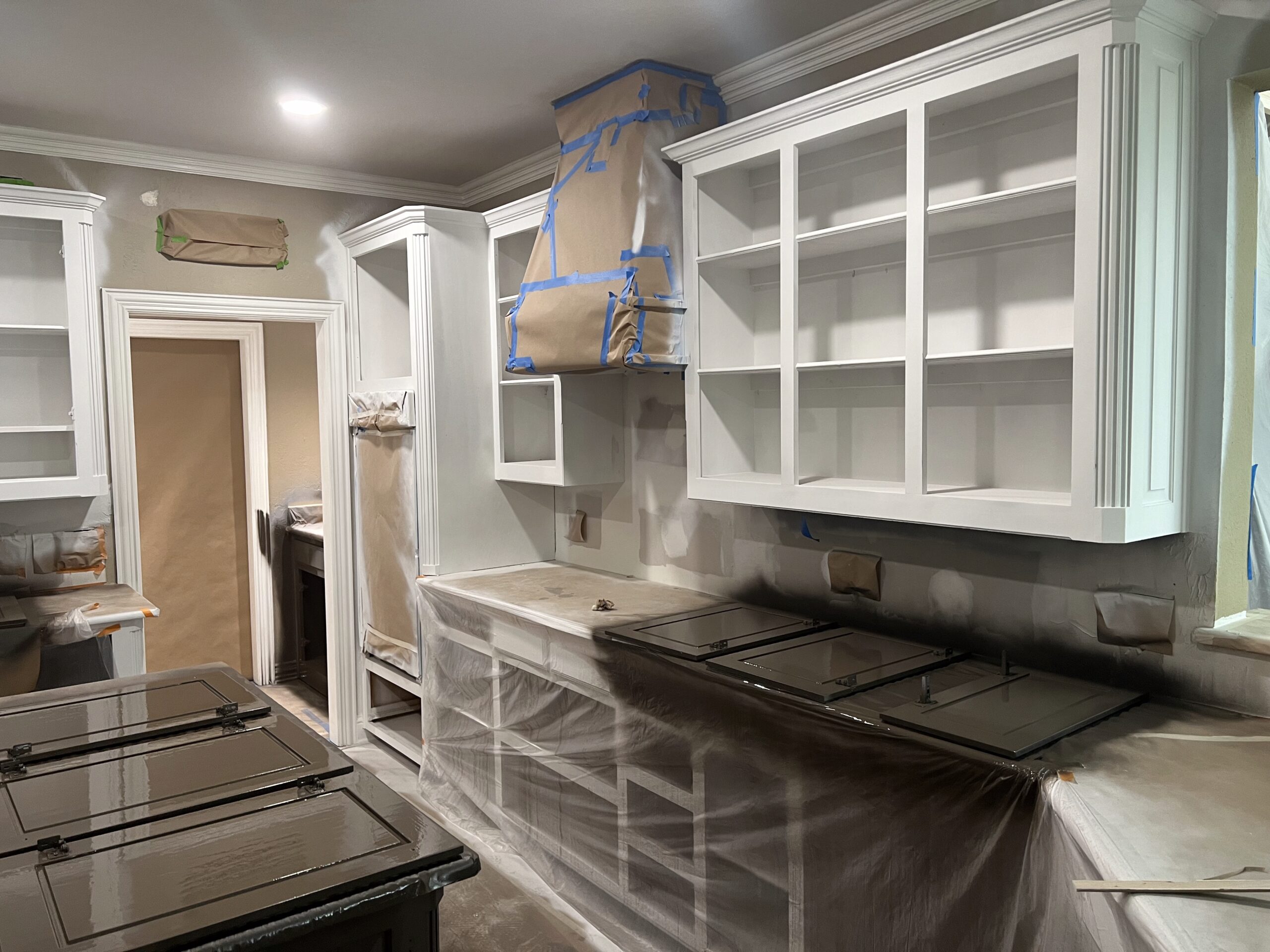 This kitchen was in need a modern facelift. Rather than deleting the existing kitchen cabinetry, we modified and augmented by matching the style, painting, installing a new backsplash, and beautiful granite countertops.